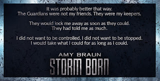 A. Currently, I have two novels coming out. The first is a standalone called STORM BORN, and its an urban fantasy story set in an alternate world where every hundred years, a colossal storm called the Centennial strikes the whole world in a variety of ways– tornadoes, hurricanes, blizzards, dust storms, floods– with one crucial difference: These storms aren't created by nature, but by humanoid creatures called the Stormkind. The main character is a young woman who finds herself transformed in the Centennial, and falling into a wild conspiracy between secret societies and warriors bent on destruction.